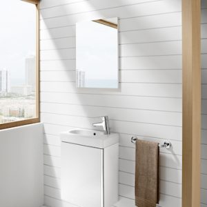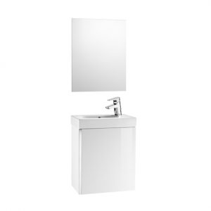 Set Mobilier cu lavoar, oglinda și spot LED, Roca Mini, 45 cm, Alb